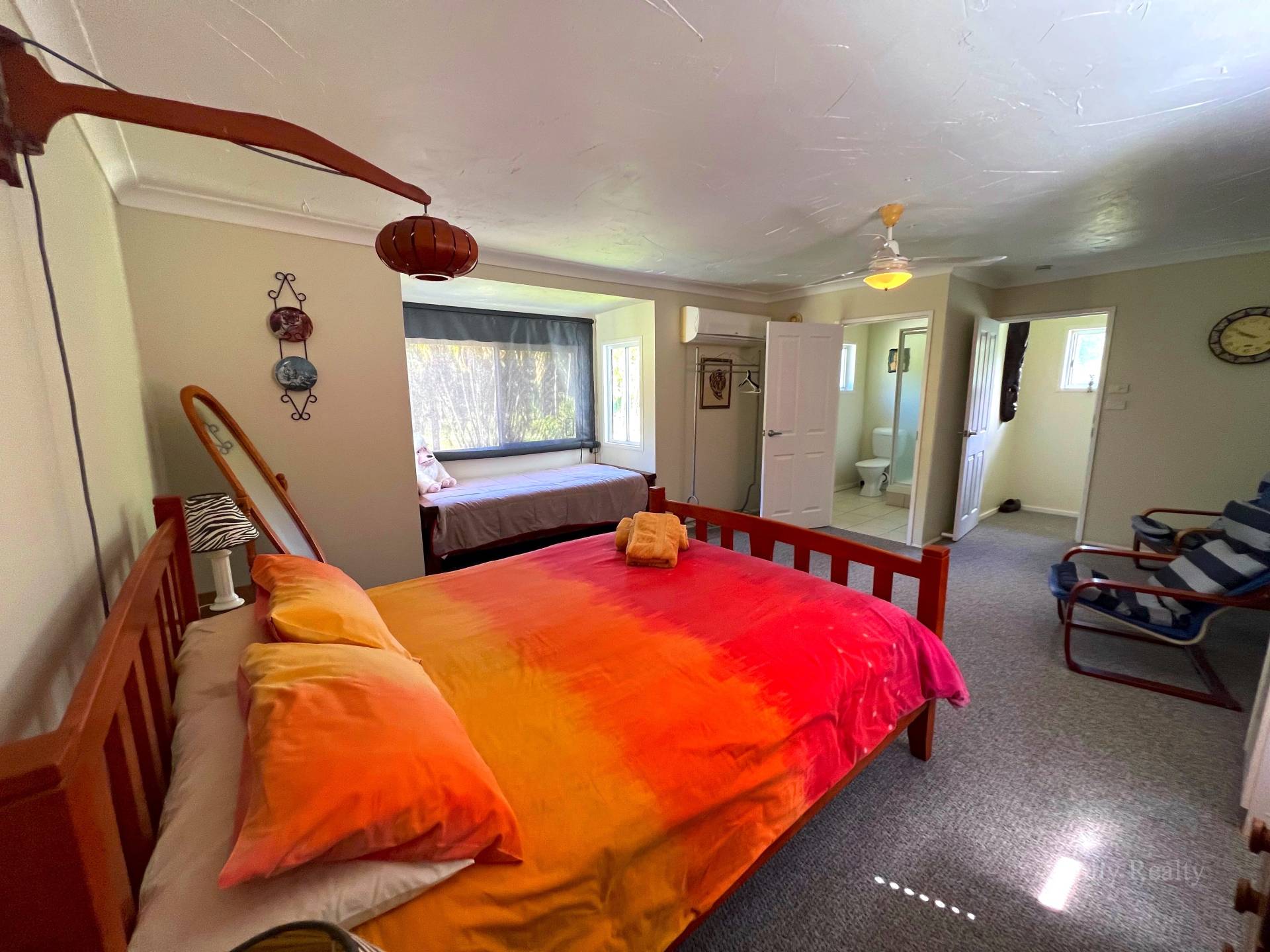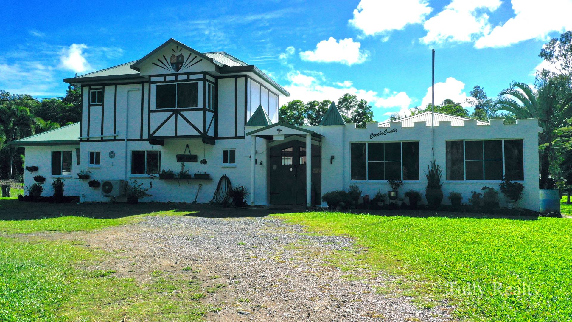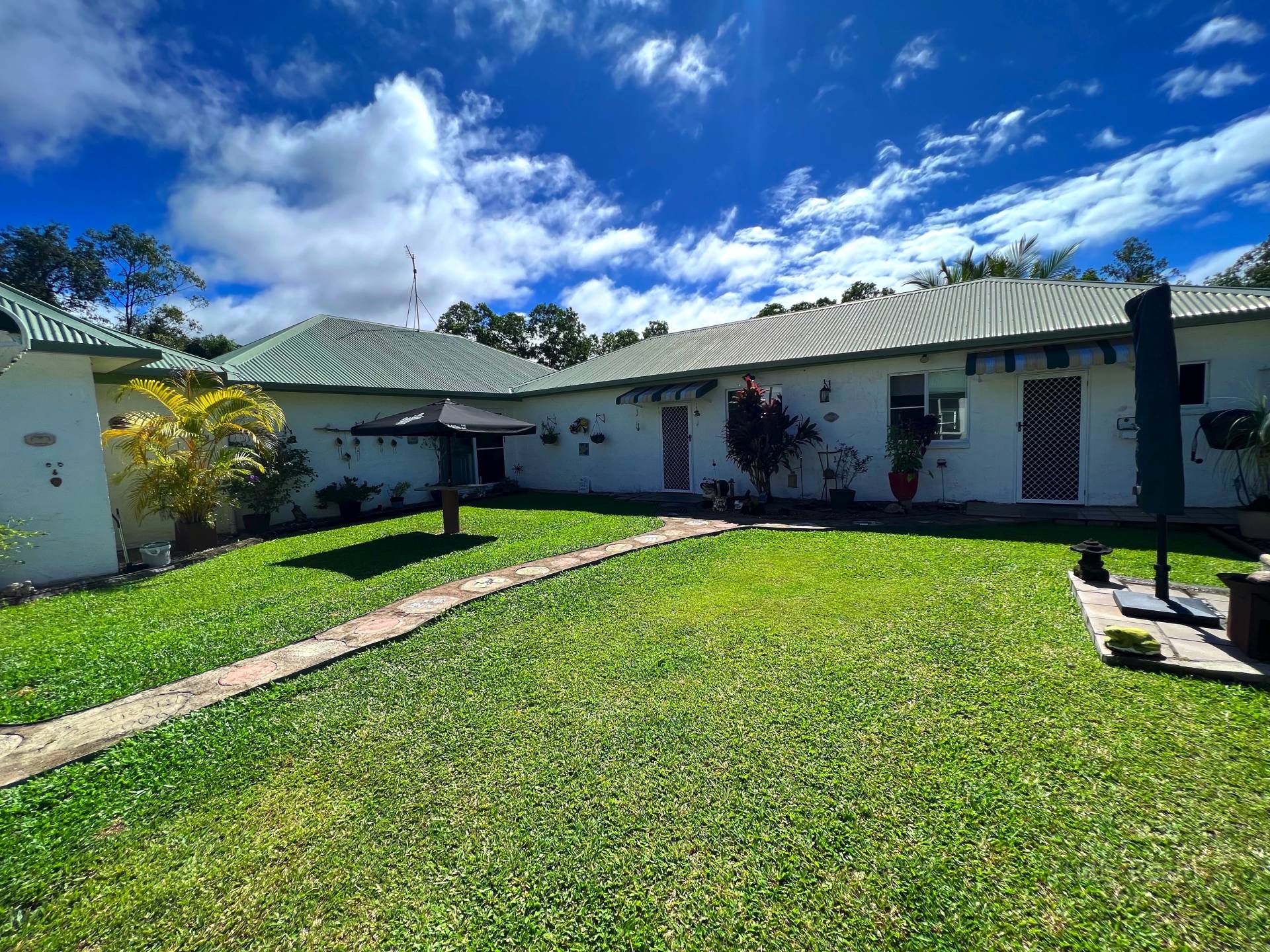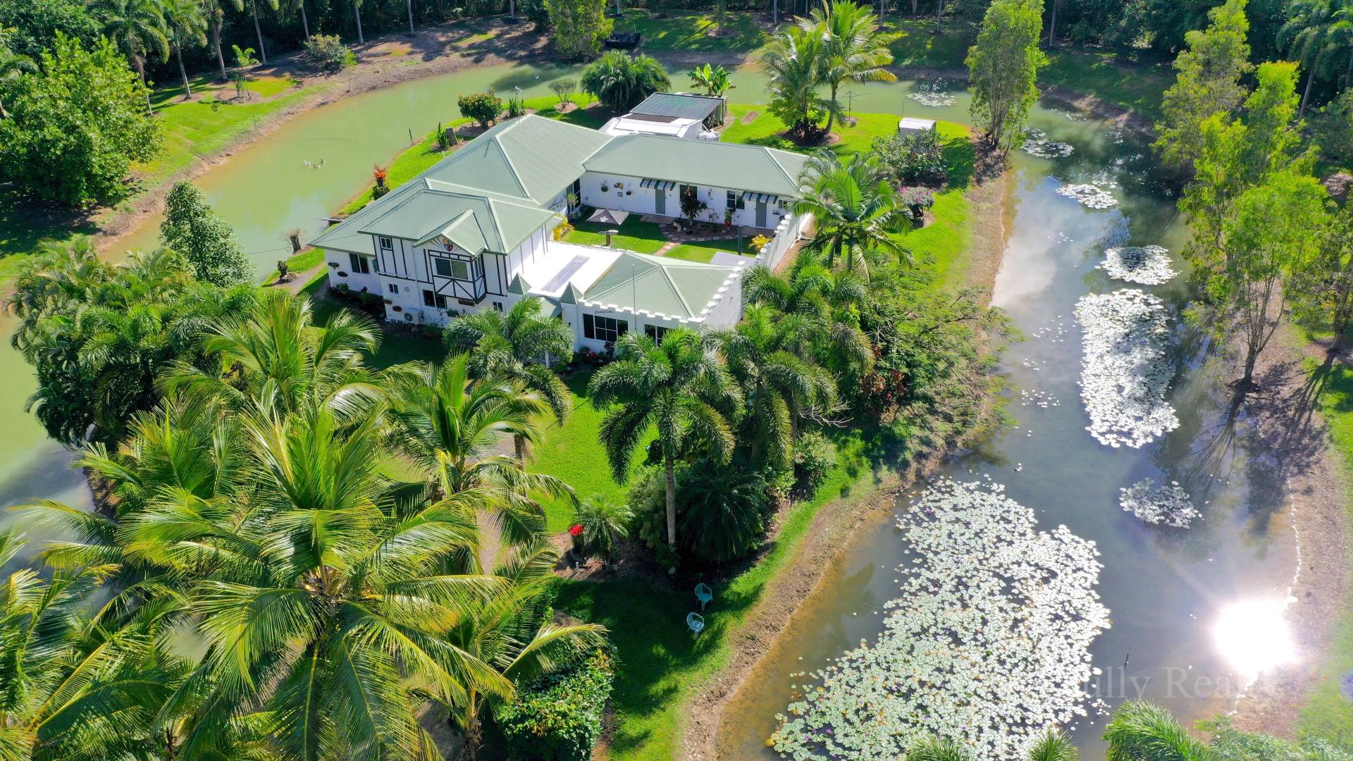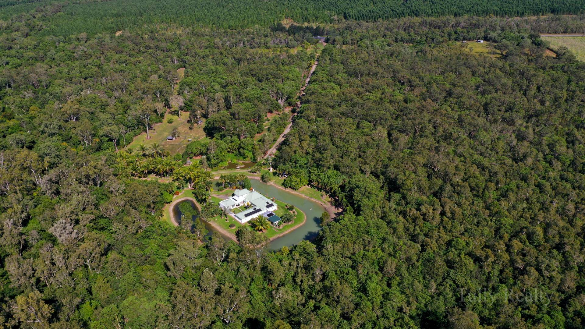 This large 21 ha property has a private driveway off the highway to a castle style home towards the rear of the property, with the house surrounded by a moat (water feature ).The solid built u shaped home has 4 bedrooms and 4 bathrooms all air conditioned.